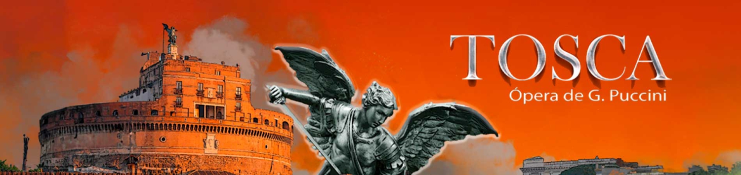 La ópera está ambientada en la Roma de 1800. Mientras pinta un cuadro de La Madonna en la iglesia de Sant’Andrea della Valle, el pintor Mario Cavaradossi, amante de la celosa Tosca, accede a ayudar al prisionero político Angelotti en su fuga. El jefe de la policía, Scarpia, cuyos objetivos políticos ocultan un raro sadismo, se lanza a la persecución y pronto descubre la implicación de Cavaradossi. La única forma de lograr sus fines es utilizar a la bella Tosca, blanco de sus obsesiones. Cavaradossi es detenido y Scarpia cree por un instante poseer a la bella Tosca, justo antes de que ella le apuñale. Aunque Scarpia muere, sus sombríos planes le sobreviven. Cuando Tosca piensa que finalmente puede liberar a su amado Mario, éste es ejecutado y Tosca, antes de ser capturada, prefiere lanzarse al vacío desde lo más alto del Castillo de Sant’Angelo. Ópera en tres actos de G. Puccini. Libreto de Luigi Illica y Giuseppe Giacosa basado en la obra de Victorien Sardou.