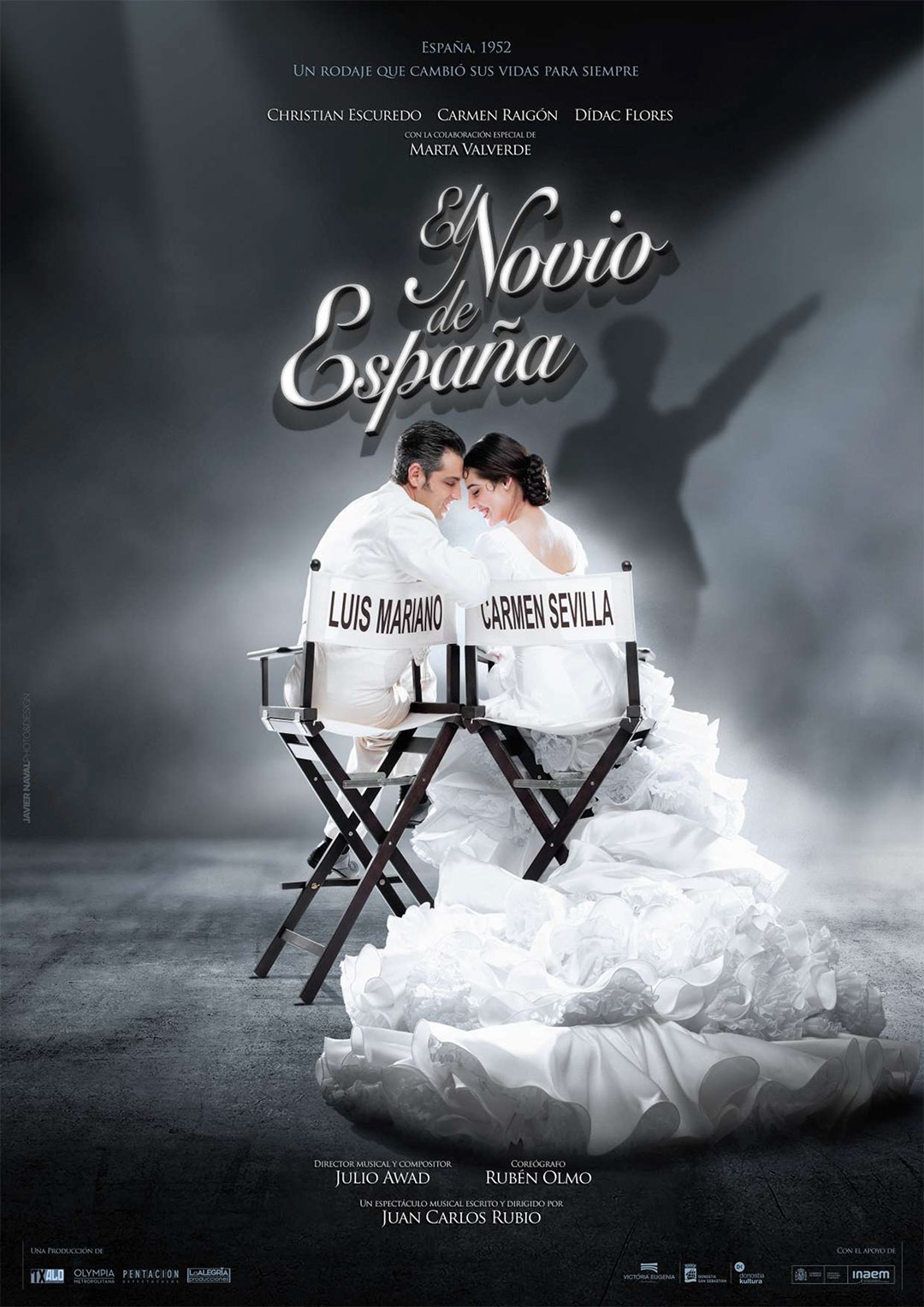 El dramaturgo Juan Carlos Rubio se ha embarcado en una trilogía musical que recoge parte de la historia de España, desde 1936 hasta 1975. Tras el éxito obtenido con el primer título, En tierra extraña, ese ficticio encuentro entre Concha Piquer, Rafael de León y Federico García Lorca, en julio de 1936, al ritmo de coplas y jazz, llega ahora El novio de España, situada en 1952, fecha contemplada a día de hoy como el indudable arranque de una nueva etapa en esos años oscuros en los que vivió España. El internacionalmente conocido cantante vasco Luis Mariano se encuentra en España rodando Violetas imperiales. Tras el enorme éxito de El sueño de Andalucía, Carmen Sevilla y él vuelven a protagonizar una película musical. Entre los dos existe una entrañable amistad que ambos saben que no puede convertirse en amor, dadas las evidentes preferencias sexuales del cantante. Pero Luis está dispuesto a “heterosexualizar” su imagen, zanjar las habladurías y pedir a la actriz que se case con él. Se convertirá en un “hombre de verdad”. Carmen no comprende la repentina ansiedad de Luis por “normalizar” su vida. Y es que el tenor esconde una poderosa razón: sus padres, republicanos exiliados al comienzo de la Guerra Civil, quieren regresar a España. Y él desea pedirle a Franco que se lo permita, renovando sus pasaportes. Y si para alcanzar ese fin ha de renunciar a su verdadero ser, está dispuesto. La actriz se niega a participar en un matrimonio de conveniencia, pero promete ayudarle a conseguir sus objetivos. El 18 de julio Franco dará su tradicional fiesta en La Granja. ¿No es ese el momento perfecto para que Luis pueda conseguir su objetivo?