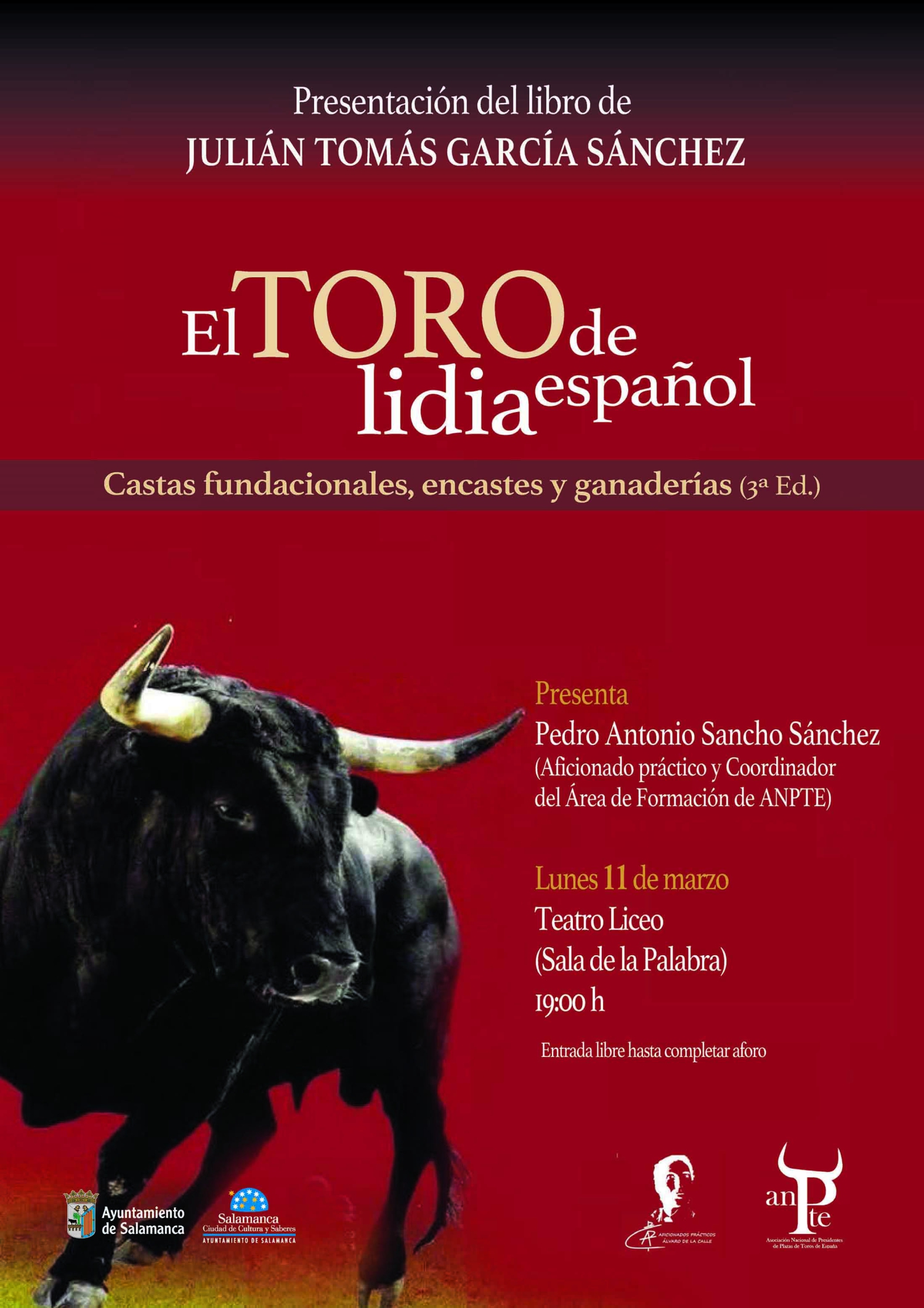 EL TORO DE LIDIA ESPAÑOL, CASTAS FUNDACIONALES, ENCASTES Y GANADERÍAS, de Julián Tomás García Sánchez (Coronel de Artillería y Licenciado en Geografía e Historia),  es un libro editado por Entorno Gráfico Ediciones con la colaboración del Ilustre Colegio Oficial de Veterinarios de Granada.