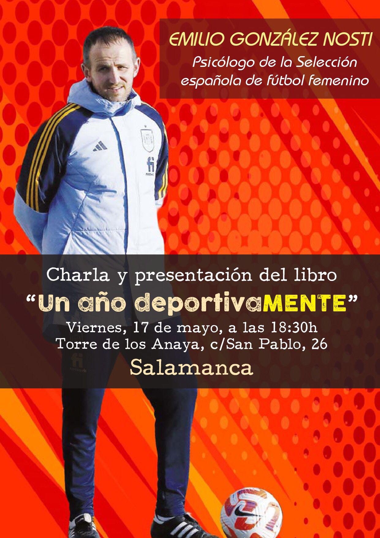Emilio González Nosti, (Candás, Asturias, 1985), psicólogo de la selección nacional femenina de fútbol, presentará su último libro en Salamanca, el próximo viernes 17 de mayo en la Torre de los Anaya (calle San Pablo, 26).