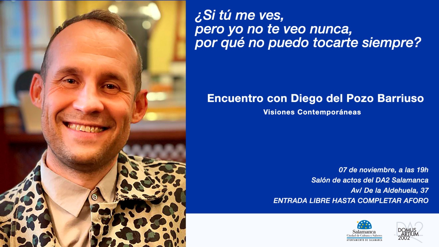 Bajo el título “¿Si tú me ves, pero yo no te veo nunca, por qué no puedo tocarte siempre?” Diego hablará de su proceso creativo y de las ideas y conceptos fundamentales en el desarrollo de su práctica artística actual.