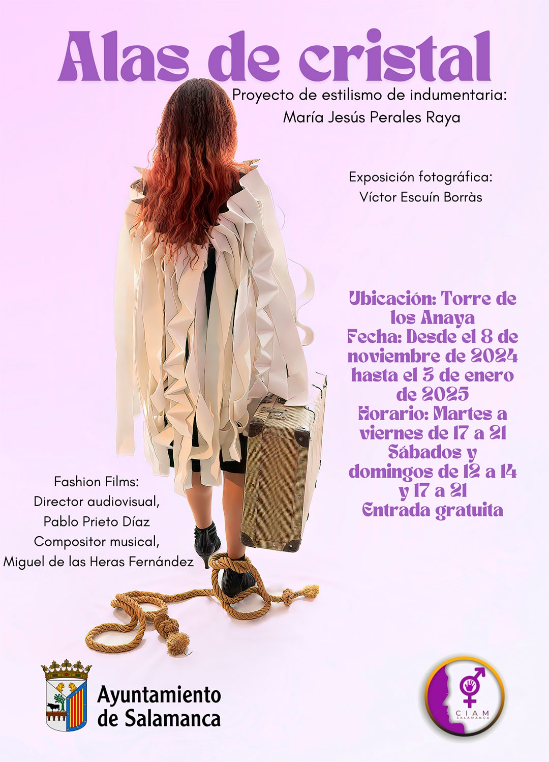 Sinopsis: Esta exposición está basada en una editorial de moda y un Fashion films, cuya finalidad es visualizar a través de la moda, la problemática que existe a nivel mundial con la “violencia de género”. Se expondrá el proceso de creación desde los bocetos y creación de las prendas hasta las fotografías y vídeo realizados. Se trata de un proyecto de estilismo de indumentaria, donde se mostrará lo que están viviendo estas mujeres, con la intención de que la espectadora se vea reflejada en las fotografías y en el video, haciéndolas reaccionar así ante posibles situaciones de dependencia que podrían darse a lo largo de sus vidas, consiguiendo que se planteen que esto les puede suceder y lo negativo que resulta para poder ser felices. Para realizar este proyecto nos basamos en un grupo heterogéneo de mujeres, puesto que esta problemática se da en cualquier edad, clase social y nivel económico. Por ello, se piensa en una estética minimalista, conceptual y austera, con referencias a la dependencia y a la falta de libertad, con el menor número de elementos dentro de la composición fotográfica o de las escenas de vídeo. Iniciamos el proceso creativo basándonos en referentes artísticos y plásticos para iniciar el trabajo de bocetos. Como referentes de moda nos basamos en Viktor and ROL por sus diseños conceptuales y sus prendas innovadoras. Como referente artístico tenemos a Picasso, inspirándonos en su etapa surrealista y expresionista. Cada prenda de estos estilismos está bautizada con un nombre que pretende transmitir diferentes emociones, características de diferentes formas de violencia: vestido basura, vestido cuadro, vestido amor, vestido poliedria kimono, mosquitera, rejas, marioneta, pesas, capullo y mariposa.
